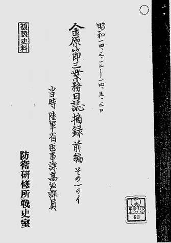 「육군성 업무일지 적록」(이하 「적록」)은 총 35권으로 이루어진 방대한 기록이다. 이 일지를 작성한 긴바라 세츠조(金原節三, 1901~1976)는 도쿄제국대학 의학부와 육군군의학교를 졸업하고 1937년 일본 육군성 의무국 의사(醫事)과원, 1941년 의사(醫事)과장을 거치며 1943년까지 육군성에서 근무했다. 이후 수마트라와 버마, 프랑스령 인도차이나 등지에서 각 군의 의무부장으로 근무하였고, 전후에는 공직에서 추방되었다가 다시 1955년 육상자위대 준장으로 임명되어 1961년 퇴역하기까지 대부분을 군에서 활동하였다. 「적록」의 전편(1939.3.12~1941.11.19)은 육군성 의사과원 시절에, 후편 (1941.11.20~1943.9.11)은 의사과장 시절에 작성되었다. 이 일지에는 육군성 국장회보, 과장회보, 의무국회보 등 각종 회보에서의 육군성 간부들의 보고 내용이 상세하게 기록되어 있다. 다른 자료에서는 볼 수 없는 귀중한 내용이다.