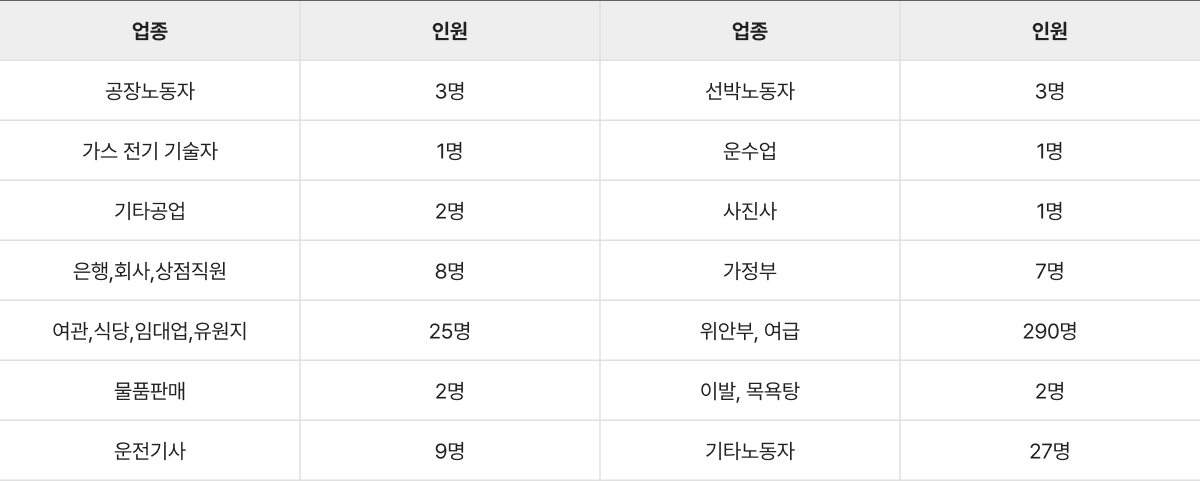 [표 1] 1938년 이후 광저우 지역 거주 한인의 직업[5]