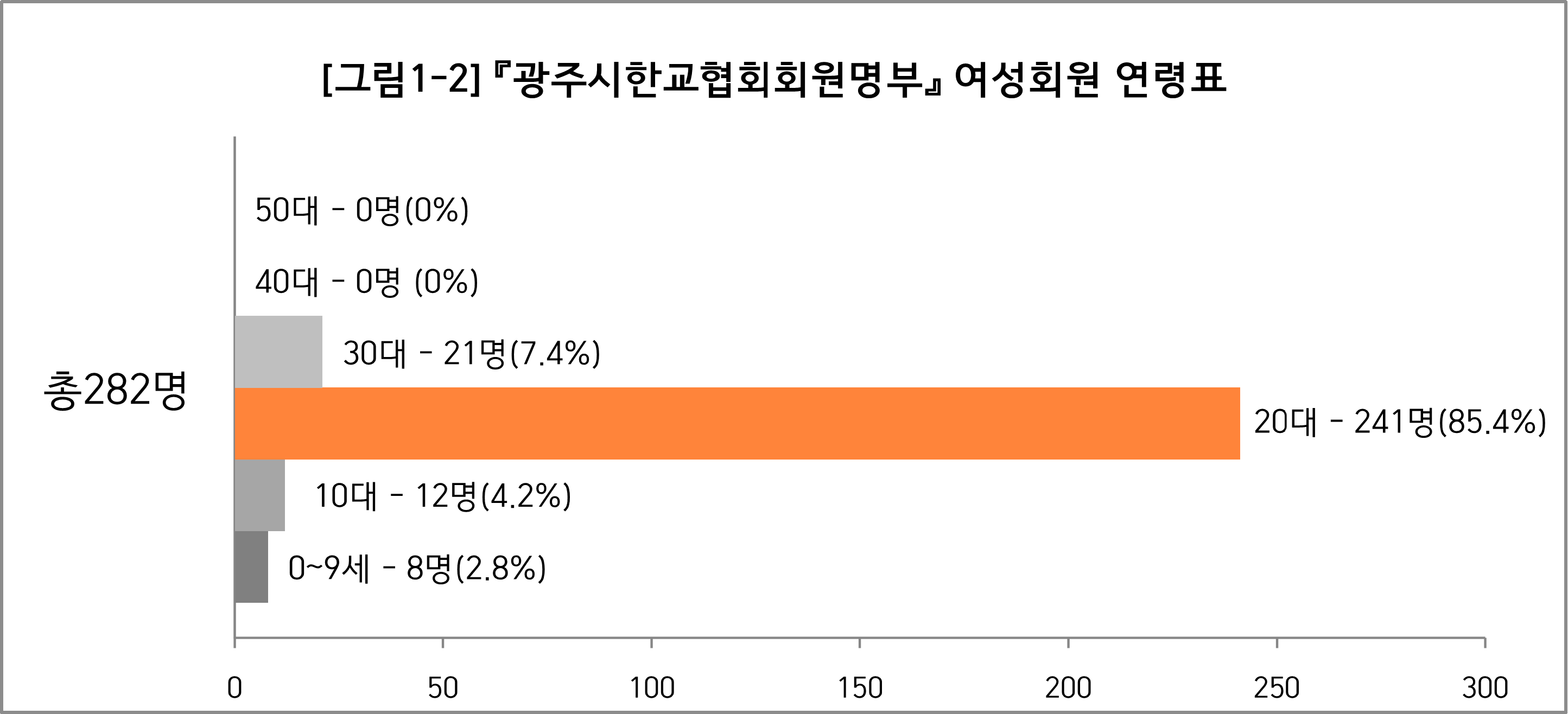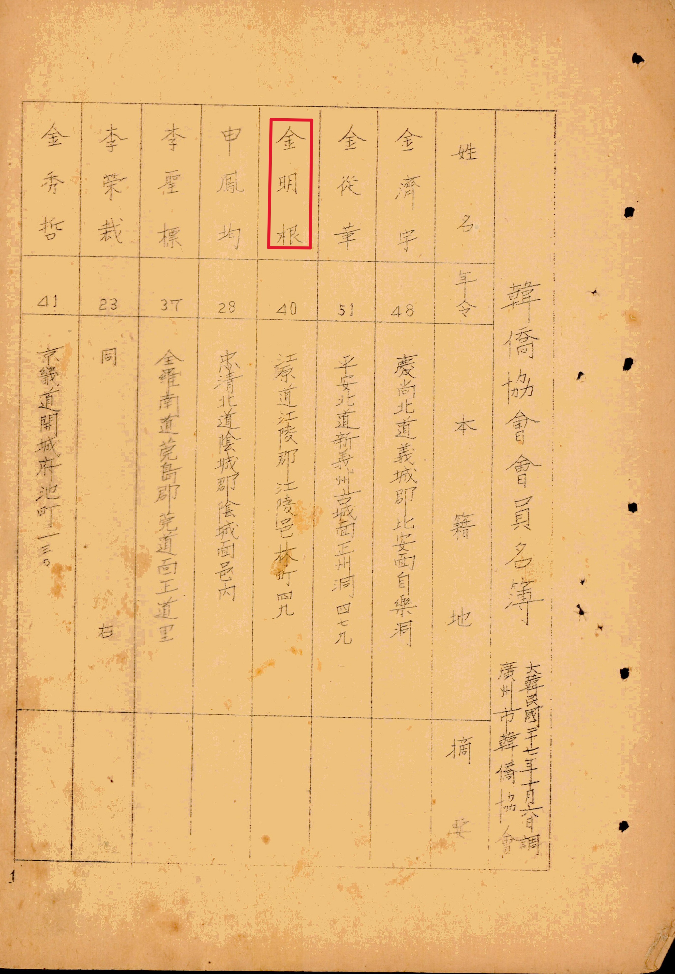 해방 직후 광저우 한인사회에서 작성된 『광주시한교협회회원명부』와 『광주시대한교민회회원명부』에는 당시 광저우에 거주한 한인들의 신상이 기록되어 있다. 명부에는 남성과 여성이 각각 따로 기재되어 있었는데, 남성은 201명과 228명, 여성은 282명과 347명이다. 이들을 『유수명부』 및 『공탁서』 등의 다른 명부들과 비교한 결과 약 30%는 군인 및 군속으로 강제동원된 한인들이었다. 남성들은 이처럼 다른 자료와 대조를 통해 강제동원 여부를 확인할 수 있었지만, 여성들은 교차 검증할 자료가 부족해 남성들과 같은 방식으로는 강제동원 여부를 확인할 수 없었다. 앞서 언급한 상해 ‘한국부녀공제회’의 사례와 같이 설립자에 의해 ‘위안부’ 피해자로 특정되지 않는 한, 명부 속 여성들의 실상을 확인하는 것에는 한계가 있을 수밖에 없다.[4] 그렇다면 광저우의 명부 속 여성들의 실체는 무엇일까? 이들의 실체를 확인하기 위해서는 해방 전‧후 광저우 한인사회의 특징과 이들의 연령을 함께 주목해야 된다.